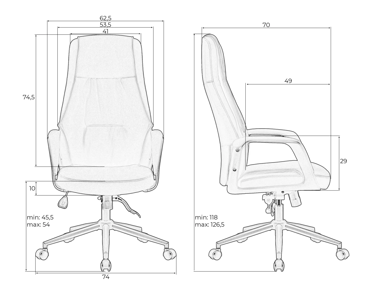 Максимальная высота сиденья, см