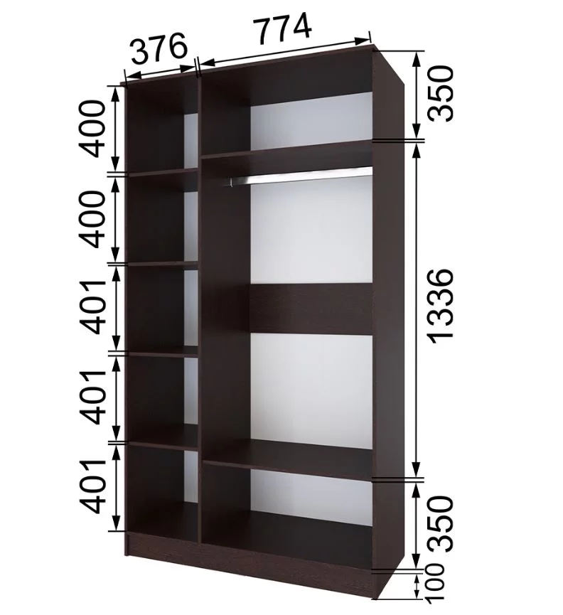 Характеристики Распашной шкаф 3-х створчатый Кано КПШ-2 с полками венге/дуб золотой крафт